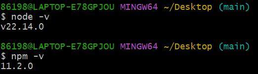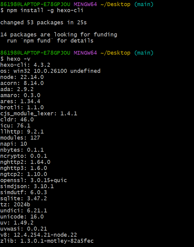 可以顺手看看版本,也是确保已经安装好了 接下来(下载hexo)并看一下版本