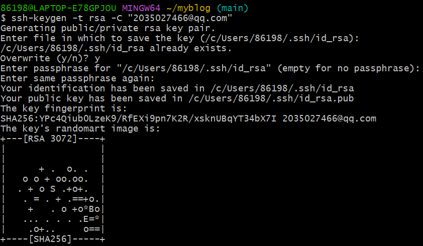 然后创建SSH,一路回车,(中间有一个问题,如果已经创建过一个ssh了会问你)