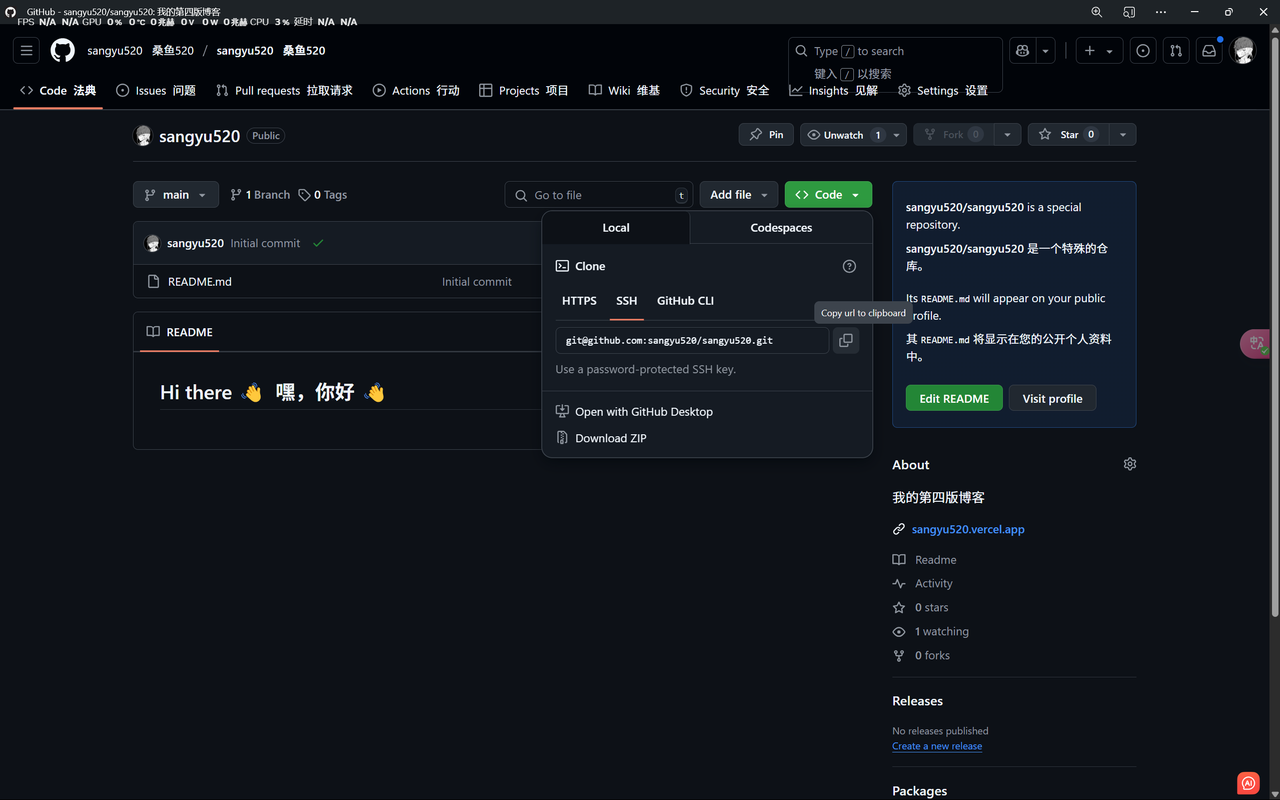 切记我们是用的ssh,所以我们复制ssh下的,不然后面会出问题(这是在_config.yml里最下面写的)