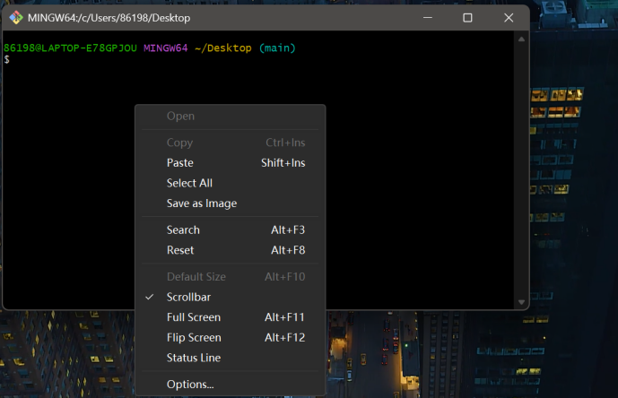 复制粘贴(合理偷懒)git –version 注意:这个里面CTRL+v不能用CTRL+c可以复制但也会终止当前命令,别不小心终止了这里的复制可以右键命令行来查看。Paste这就是粘贴(后面的Shift+Ins是快捷键!)