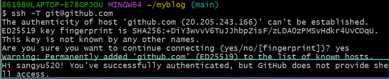 (看到这个git就是在git bash里面,记得要在你的博客所处的文件夹下执行)